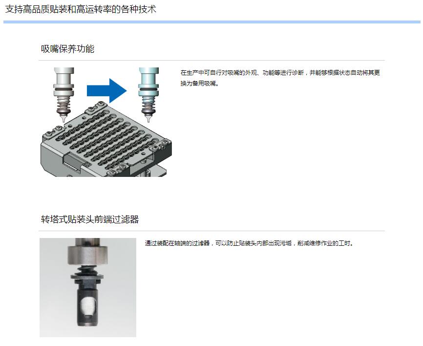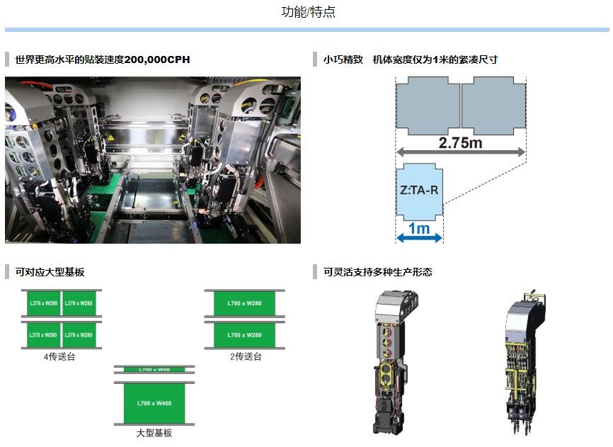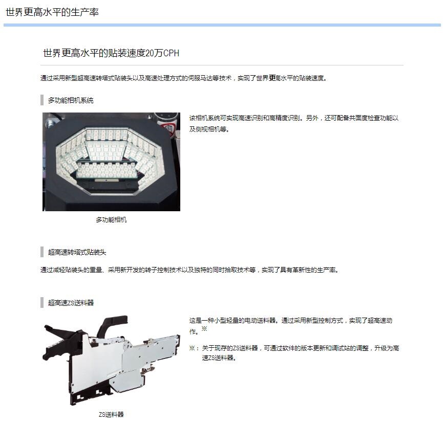 1.采用小巧的平臺構造,達成了世界更高水平的貼裝速度20萬CPH※,實現了生產率的全面革新。