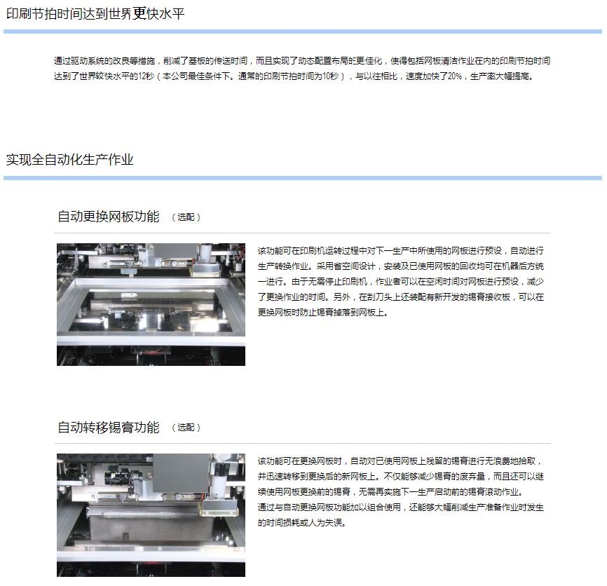 2.超高速印刷性能 包括網(wǎng)板清潔作業(yè):12sec/cycle / 10sec/cycle
